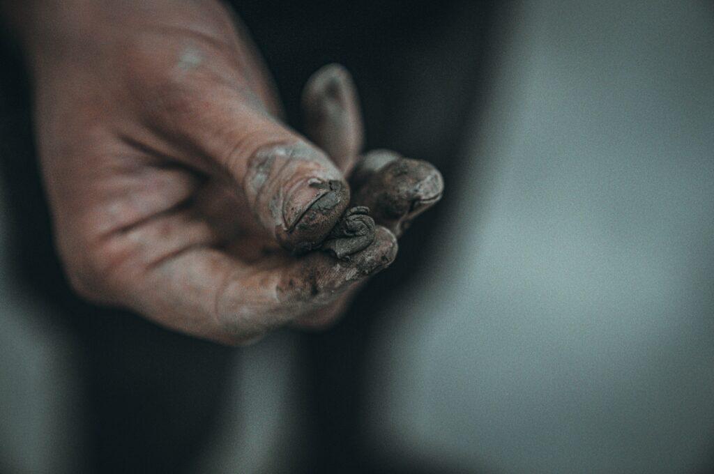 Each bust form features the same muted fabrics and woods, twinned with a bronze neckline. This simple neckline makes it possible to use the same detail for both the suspended and standing bust forms.