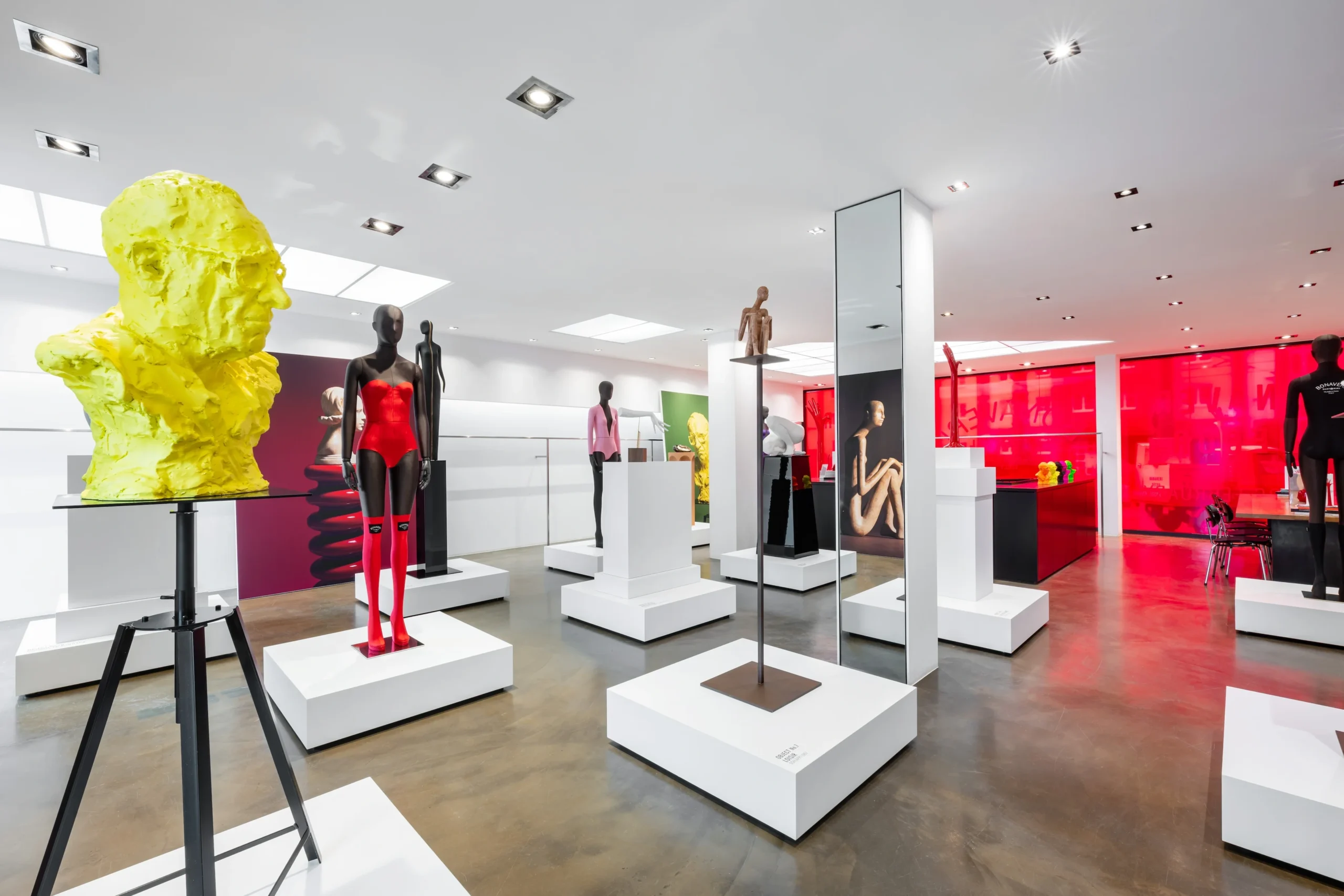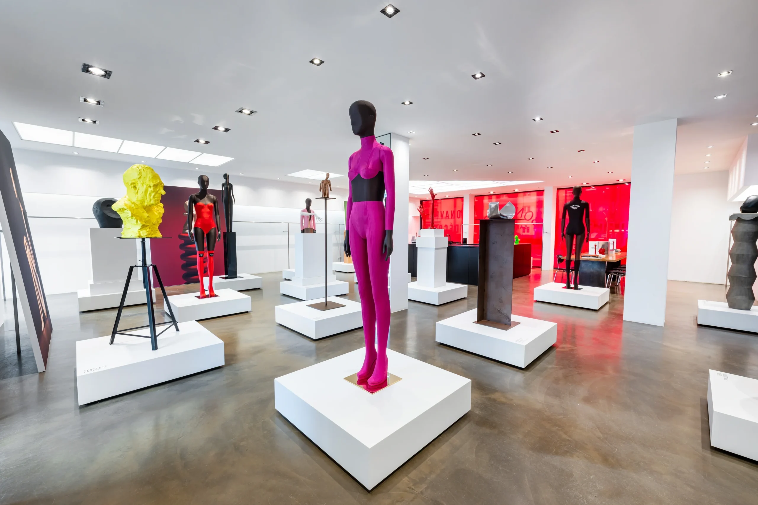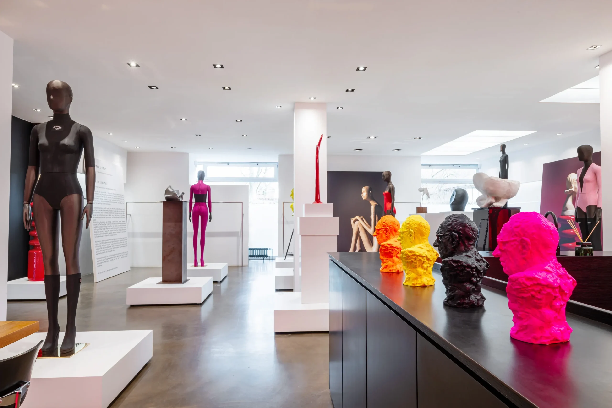 Italian luxury mannequin house Bonaveri deviated from the traditional exhibition hall at EuroShop by creating a smaller, more intimate installation at their Düsseldorf showroom titled ‘We dream in colour, we celebrate craft.’ The showroom transformed into their own personal art gallery, a minimalist white space where guests are invited and encouraged to explore each object on display and to weave in and out of various installations, allowing each item to be viewed in 360 degrees. The house exhibits a limited selection of objects and mannequins, neither of which most guests would expect to see.