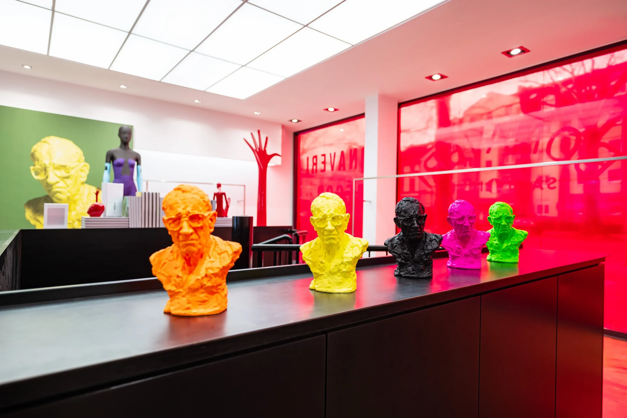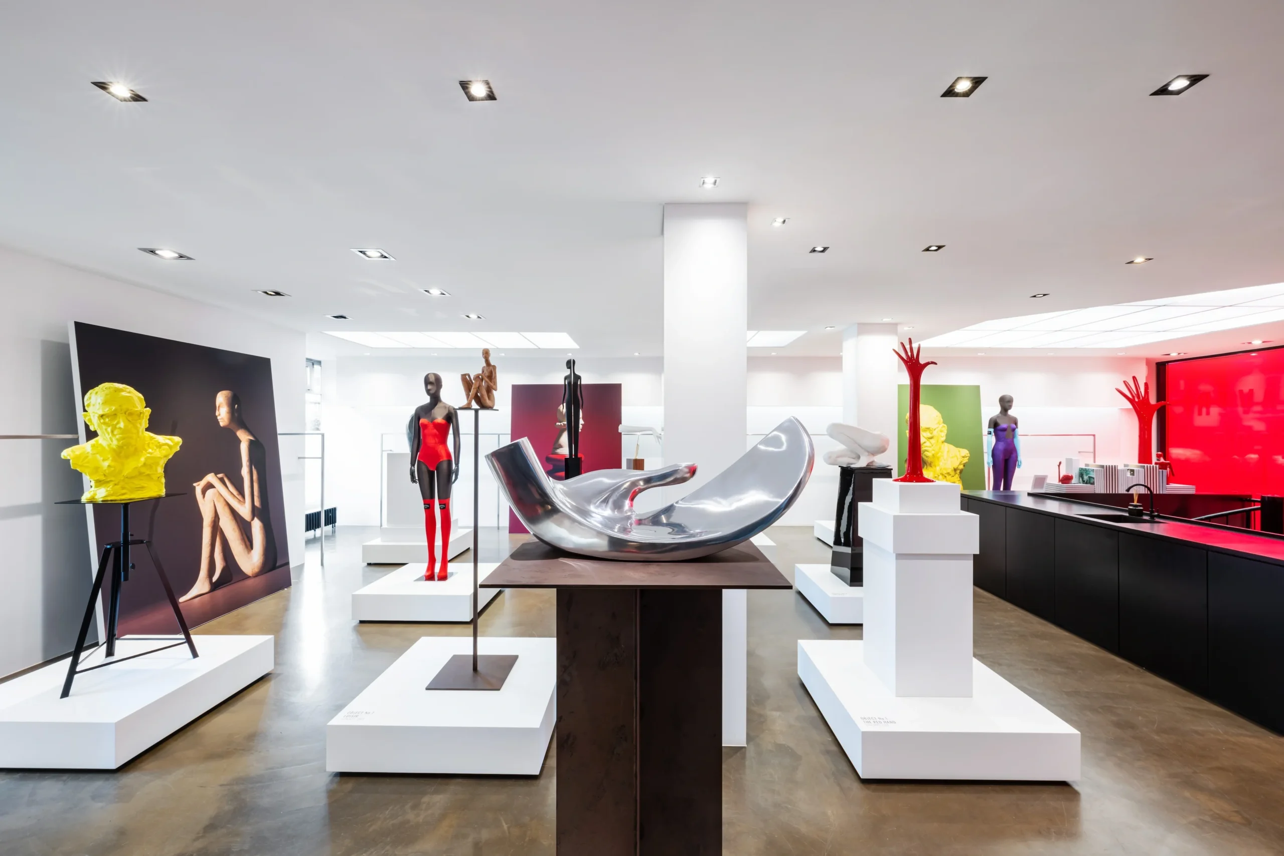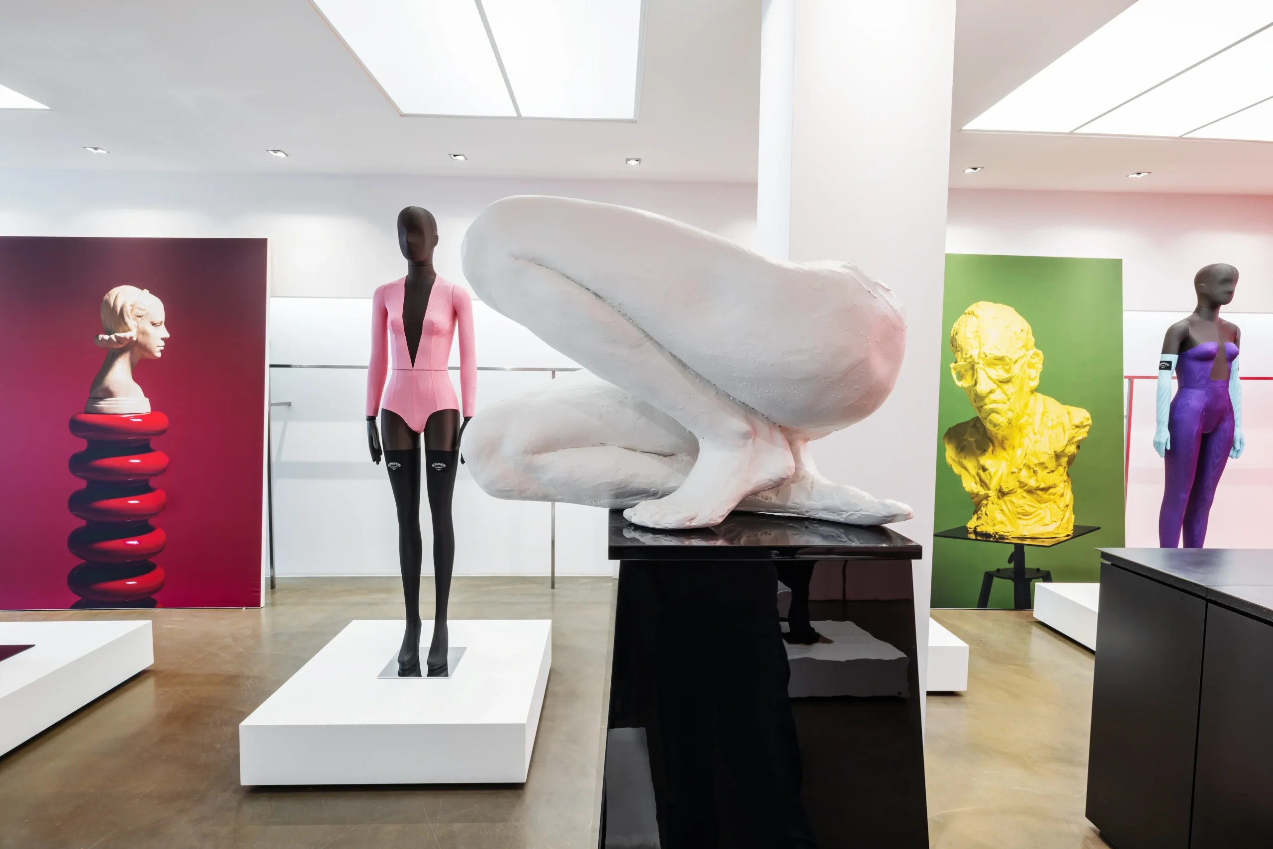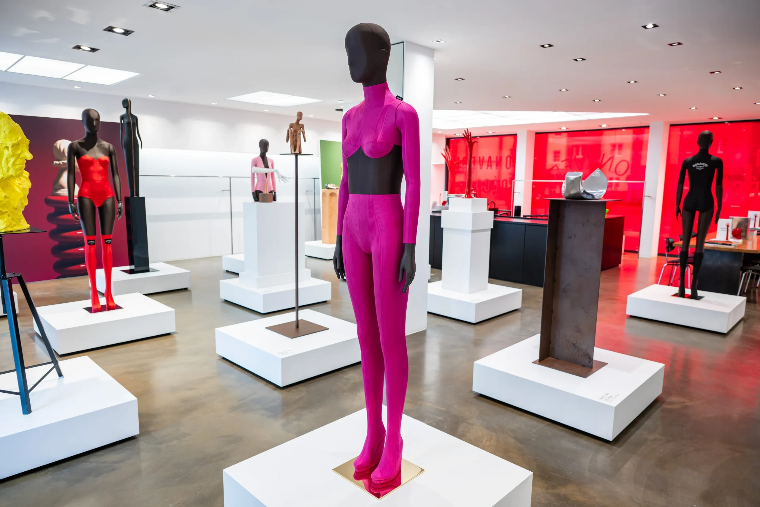 Italian luxury mannequin house Bonaveri deviated from the traditional exhibition hall at EuroShop by creating a smaller, more intimate installation at their Düsseldorf showroom titled ‘We dream in colour, we celebrate craft.’ The showroom transformed into their own personal art gallery, a minimalist white space where guests are invited and encouraged to explore each object on display and to weave in and out of various installations, allowing each item to be viewed in 360 degrees. The house exhibits a limited selection of objects and mannequins, neither of which most guests would expect to see.
