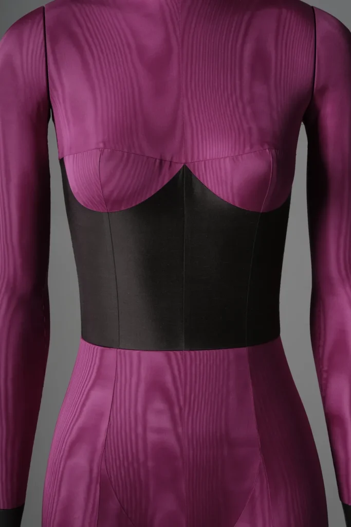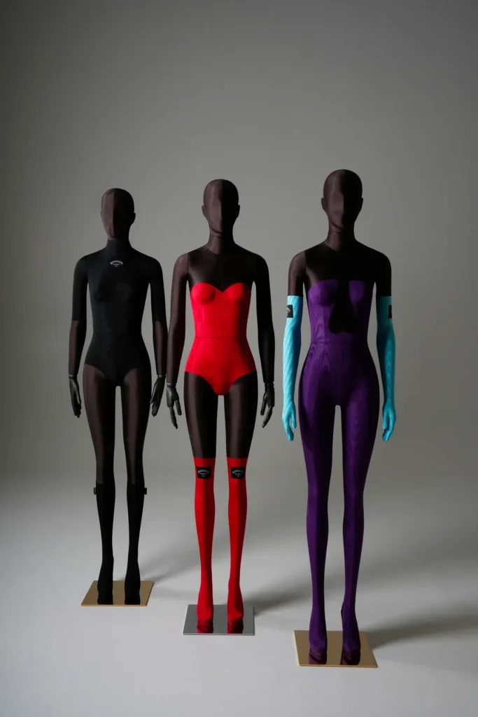 Davidge, inspired by the current best-selling mannequins, Sartorial, grew bored with the typical calico and linen upholstery. She aimed to ignite clients’ imaginations by transforming traditional, ordinary upholstery into something extraordinary, something couture. Using the art of moulage, she reshaped the upholstery of the female form and created a series of five bespoke mannequins that, at first glance, appeared to be dressed; upon closer inspection, it became clear she had employed a trompe l’oeil effect, challenging the atelier to incorporate clothing into the upholstery pattern of the mannequin.