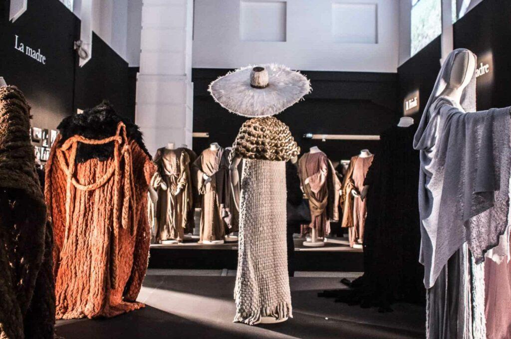 The garments are displayed, without scenic artifice, on the sartorial busts of the Bonaveri Atelier collection, similar to those on which they originally came to life: thus, a path of correspondences is traced between his reflections on the sense of the future – printed on the walls – and a selection of archive pieces, demonstrating his relationship between body and garment in overcoming chronological dimension. Bonaveri busts accompany textures and lines, enhancing garments and forms by bringing out the black color, a cosmic hue mainly used and appreciated by the designer.