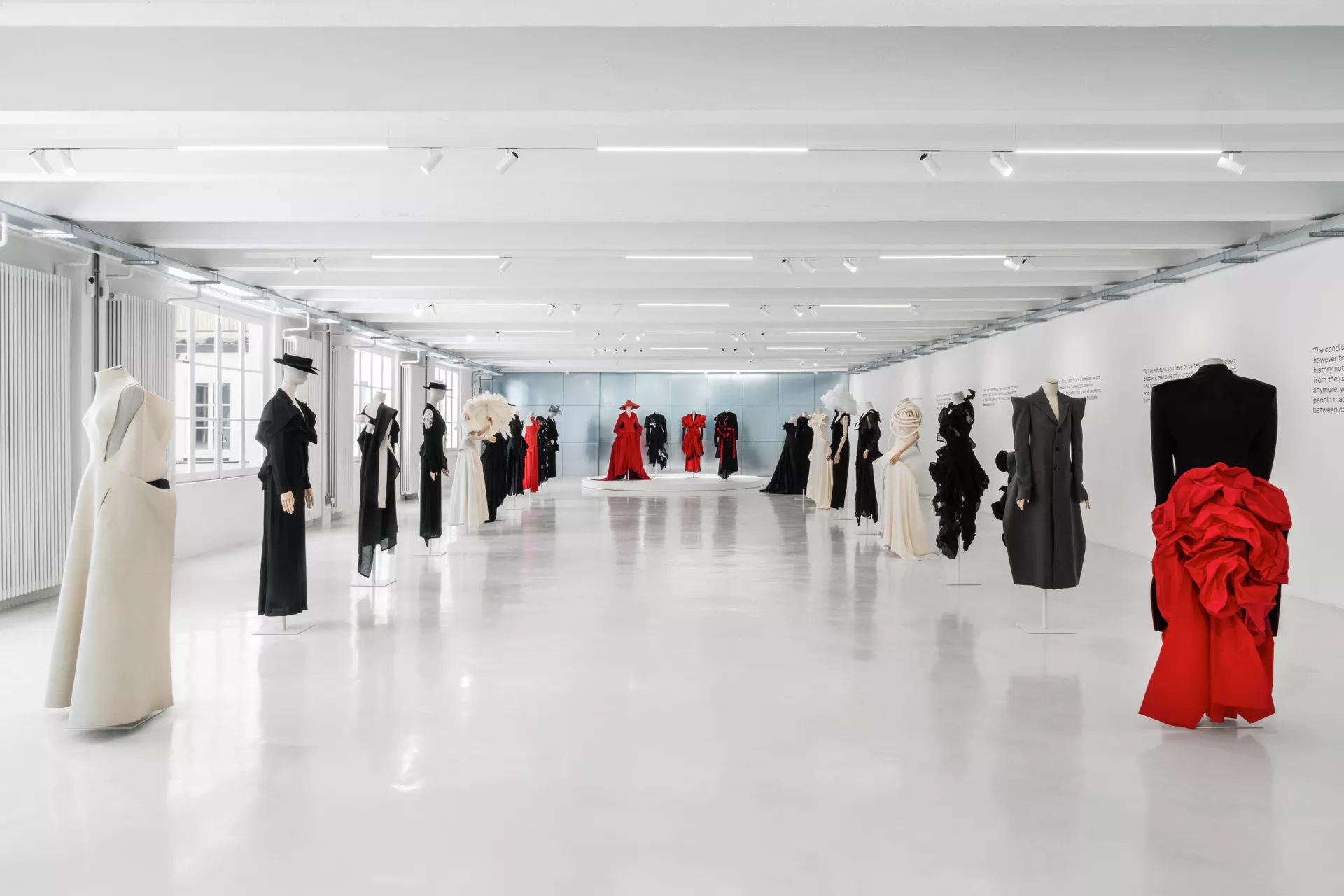 In the volumes shaped by Yohji Yamamoto, there seems to be no beginning and end anymore, because the air circulates between the body and the fabric, and the garment seems to breathe without the constraints of a predefined structure. At the center of the exhibition, the idea of welcoming imperfection for every form, and the experimentation of volumes and fabrics – worked or left to slide, draped or sculptural – motifs that have revolutionised the relationship between garment and person: for a freedom that looks to the future, without time constraints.