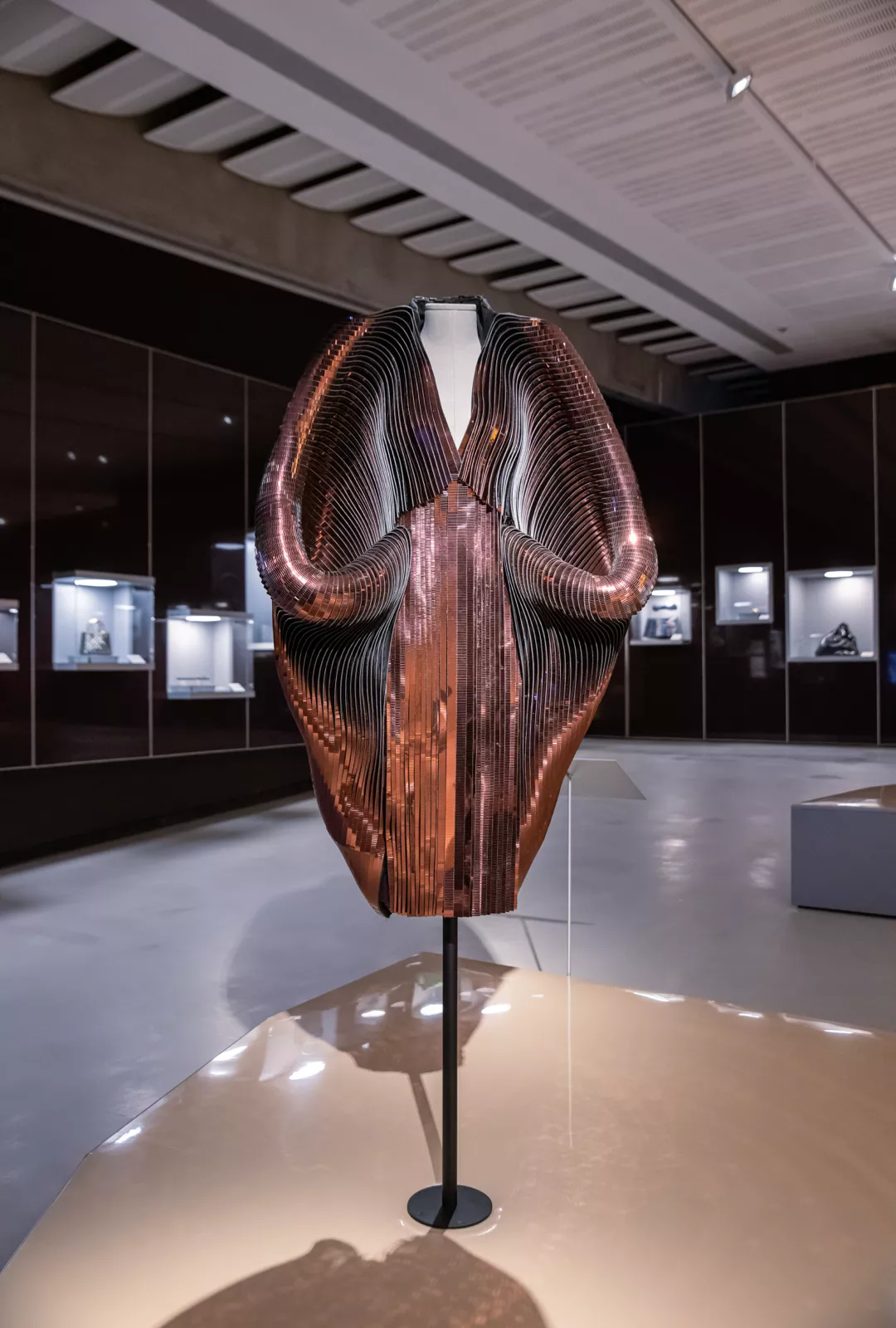 The curatorial project unfolds through thematic sequences that celebrate fashion as an expression of beauty while simultaneously highlighting the challenges of our time, such as sustainability. Sustainability thus becomes an integral part of the dialogue between fashion, design, and art, within an exhibition that aims to explore the future of the sector. Each garment and accessory on display bears witness to the past while offering a vision of the future, standing as an independent work in conversation with the others in the exhibition.